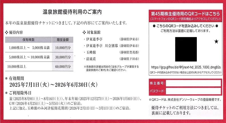※株主優待券の原券は発送しておりません。あらかじめご了承ください。