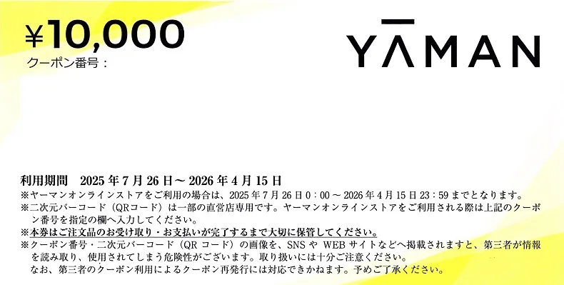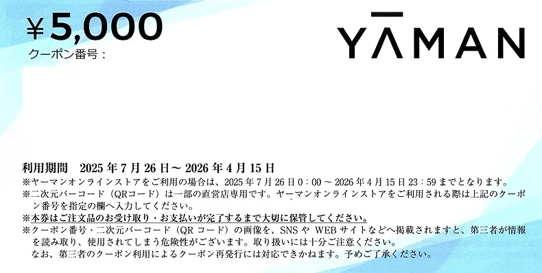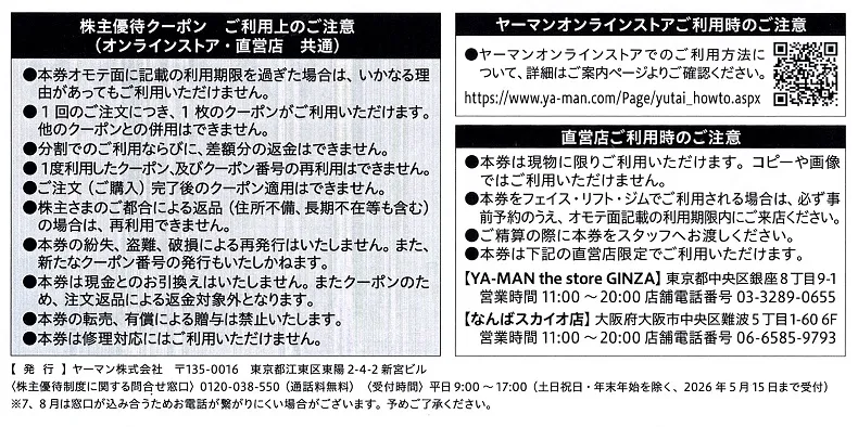 ※株主優待券の原券は発送しておりません。あらかじめご了承ください。